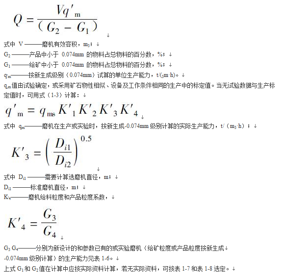 表1-6 給礦粒度與產品粒度相對生產能力G3 或G4
